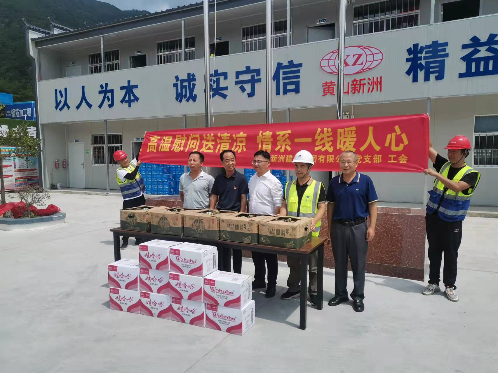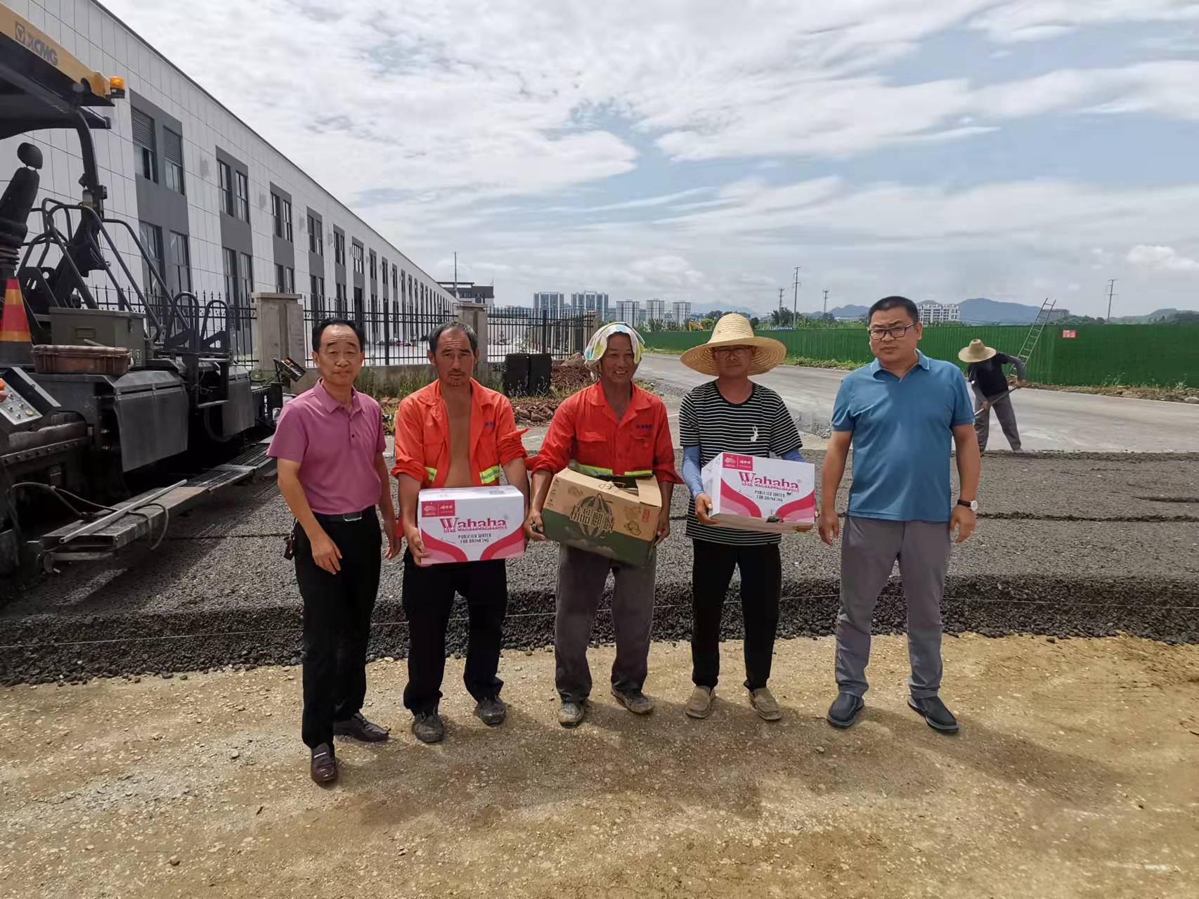 為切實維護高溫期間廣大一線職工的身體健康,2022年7月19日至20日,由集團公司總經理李利成、分管副總張遠林、黨支部書記李惠明、安全部經理吳正晨等組成慰問小組,分別對各在建項目及路面施工現場分批、分區(qū)域送去西瓜、礦泉水等慰問品,給奮戰(zhàn)在一線的職工送去了絲絲涼意,獻上了一份誠摯的關懷。